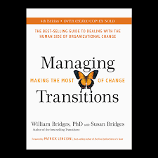 There is a book by William Bridges called, Transitions, that offers a process for making transitions. He says, “Change is situational, but transition is psychological, and it takes time.”